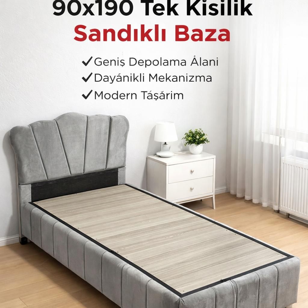 (DM Lale) Tek Kişilik Sandıklı Baza + Başlık (90×190)