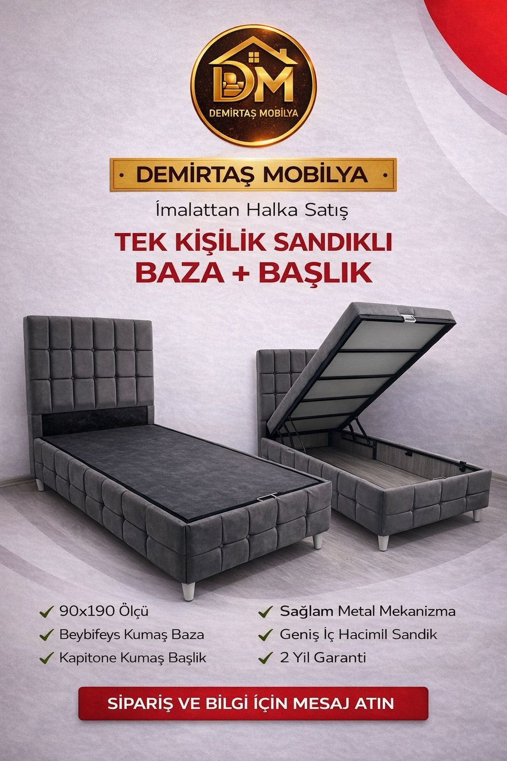 Demirtaş Mobilya kalitesiyle üretilen DM Milano tek kişilik sandıklı baza ve başlık modeli, modern kapitone tasarımı ve sağlam yapısıyla hem şık hem de kullanışlı bir çözüm sunar. Estetik görünüme sahip başlığı sayesinde yatak odalarına modern ve zarif bir hava katar.